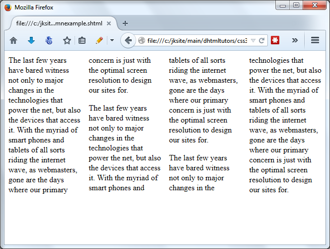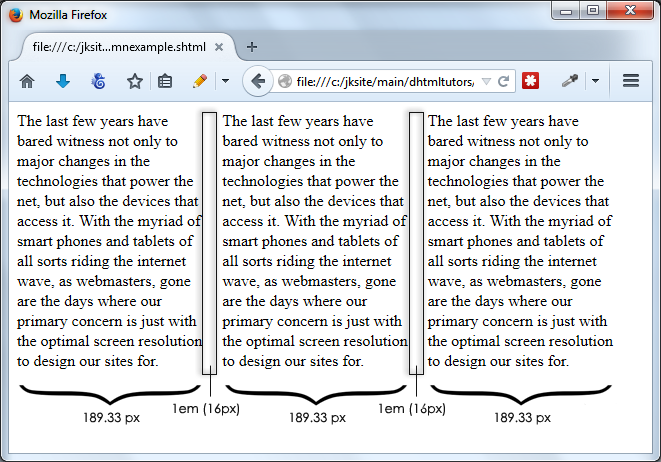 Note that CSS3 multi-column layout shouldn't be confused with multi-column site layout, where the goal is to create an entire site layout using varying column widths to house different parts of a webpage. We'll explore the later using another CSS3 module- CSS3 Flexible Box Layout- to achieve this in an upcoming tutorial.